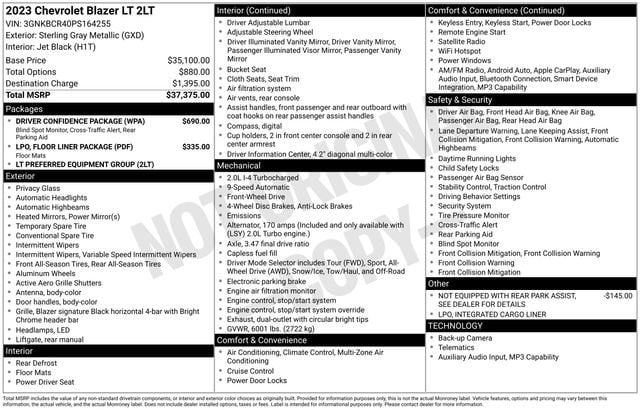 With its striking Gray exterior and well-appointed interior, the 2023 Chevrolet Blazer LT is a true head-turner. This SUV is the perfect balance of style, capability, and technology, ready to elevate your driving experience.