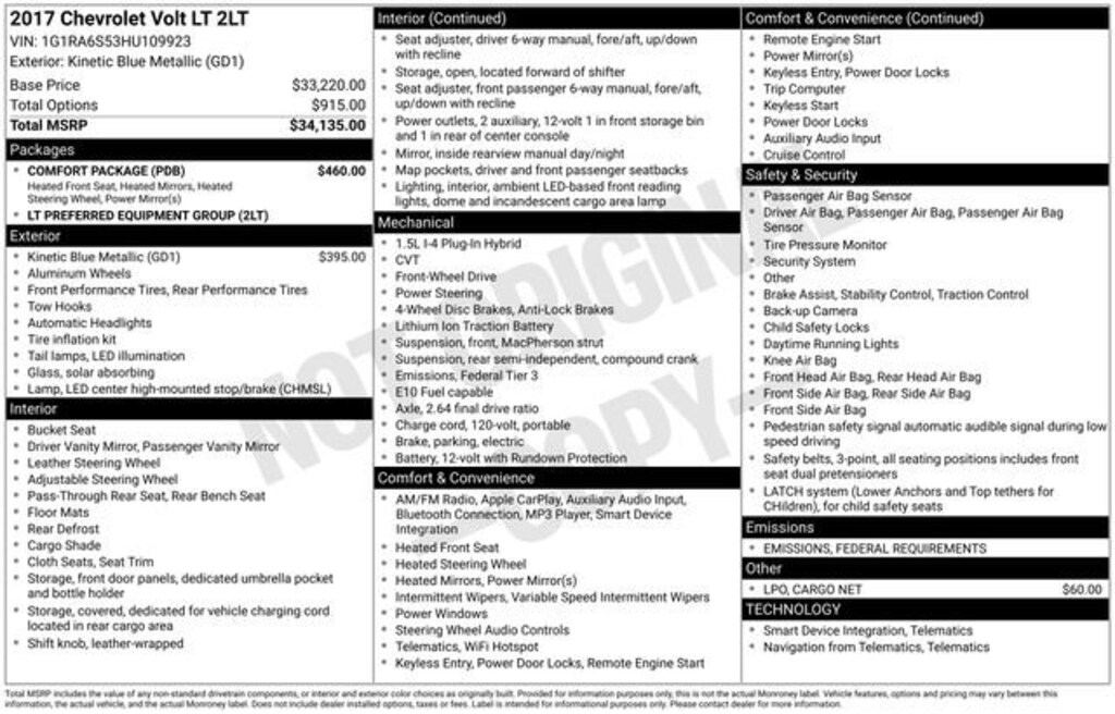 !!NEW ARRIVAL!! MORE PICTURES COMING.This vehicle was just added to our inventory and is in the process of being inspected and reconditioned; the optioned listed might not be complete and are subject to change. Please call or click the link on this page to request more information. Donât miss out contact us today!! Clean CARFAX. Odometer is 6474 miles below market average!Awards:* Ward's 10 Best Engines * 2017 IIHS Top Safety Pick+ with optional front crash prevention * 2017 KBB.com 5 Best Plug-In Hybrid Cars Under $40,000 * 2017 KBB.com 10 Most Awarded BrandsFox Chevrolet has been delivering on a promise since 1967. Come in and check out what the Fox Advantage truly is. Same Vehicle, Same Color, Same Options- Better Value. We do the legwork for you! We use state-of-the-art software to make sure our vehicles are priced below the market. This ensures you a great value, a stress-free and fun buying experience. As part of the Fox family, all of our customers receive a Deductible Reimbursement program that could save you thousands, just ask us how! FWD 2017 Chevrolet Volt LT 1.5L VVT DI DOHC 4-Cylinder Range Extender
