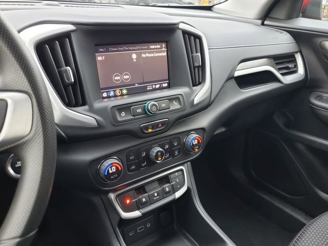 The Terrain's striking Volcanic Red Tintcoat exterior is complemented by a spacious and well-appointed interior, featuring premium cloth seating, a power driver's seat with lumbar support, and a host of connectivity and entertainment options, including wireless Apple CarPlay and Android Auto. With an EPA-estimated 24 city/28 highway mpg, this SUV offers an exceptional balance of performance, efficiency, and versatility.