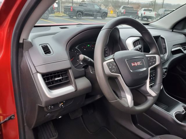 This 2023 GMC Terrain SLE comes equipped with an impressive array of features designed to enhance your driving experience. Highlights include the Driver Convenience Package, Side Blind Zone & Rear Cross Traffic, and the Terrain Pro Safety Plus package. You'll appreciate the convenience of dual-zone automatic climate control, the power and efficiency of the 1.5L DOHC engine with 9-speed automatic transmission and AWD, and the added safety of features like Adaptive Cruise Control, the Safety Alert Seat, and Lane Change Alert with Side Blind Zone Alert.